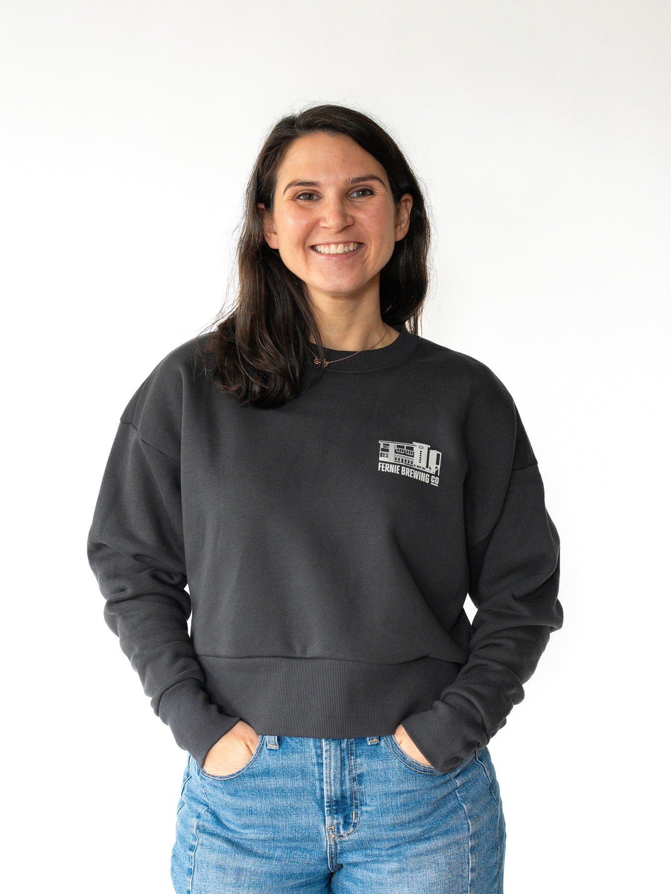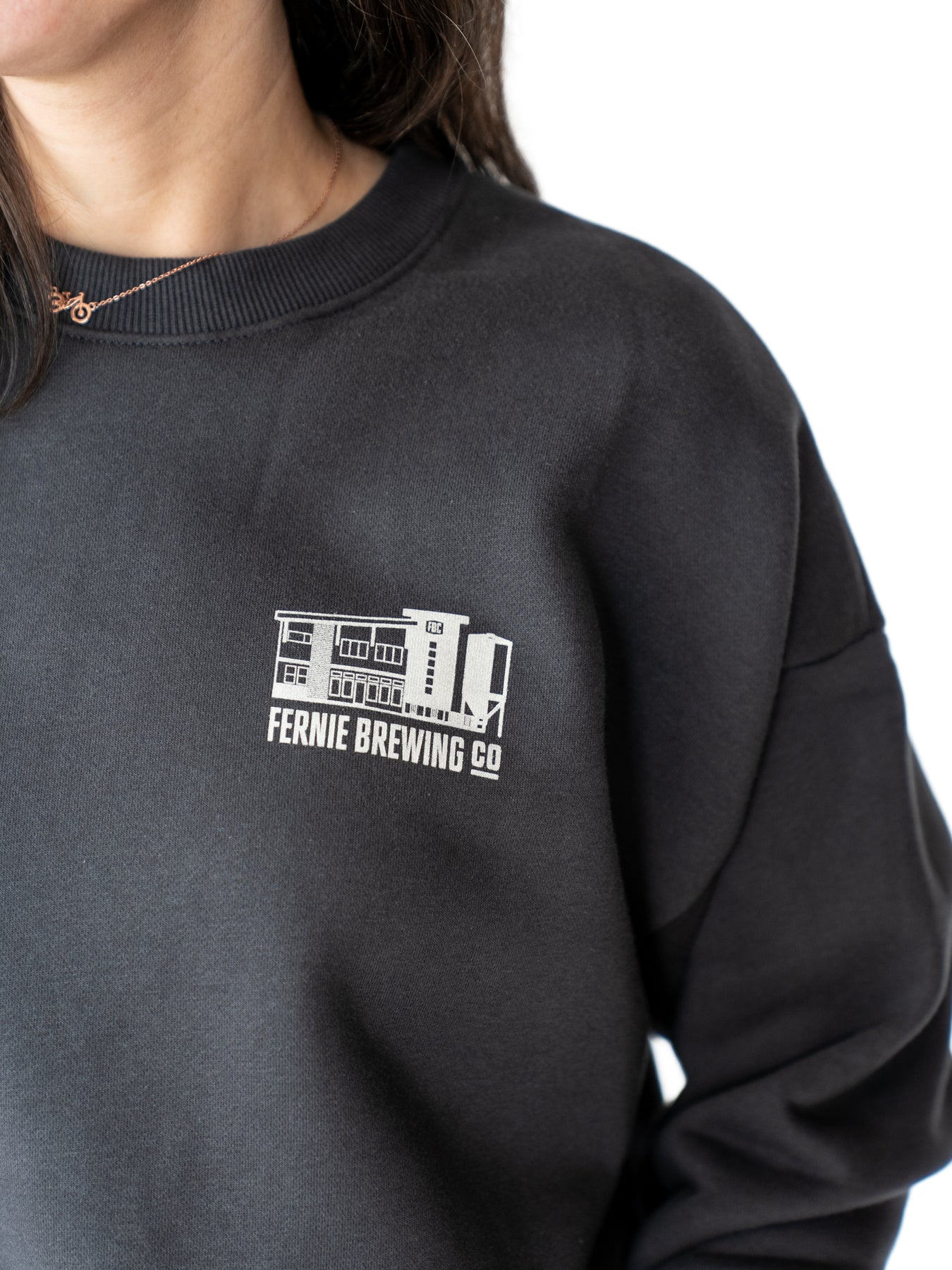 From Sunday morning strolls to afternoon pints, the Women's Standard Brewery Crew is the perfect everyday top. With a crewneck and a perfect hip-length, it features our beloved brewery on the front and the classic FBC shield on the back hip.