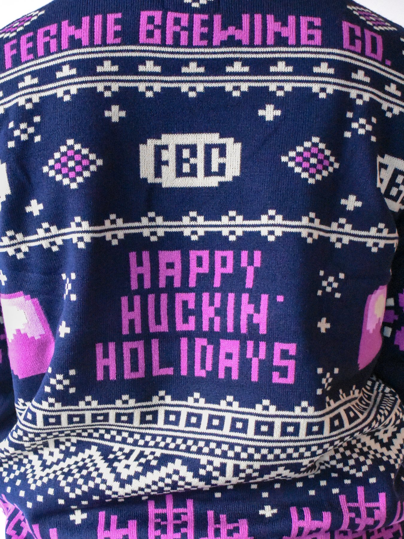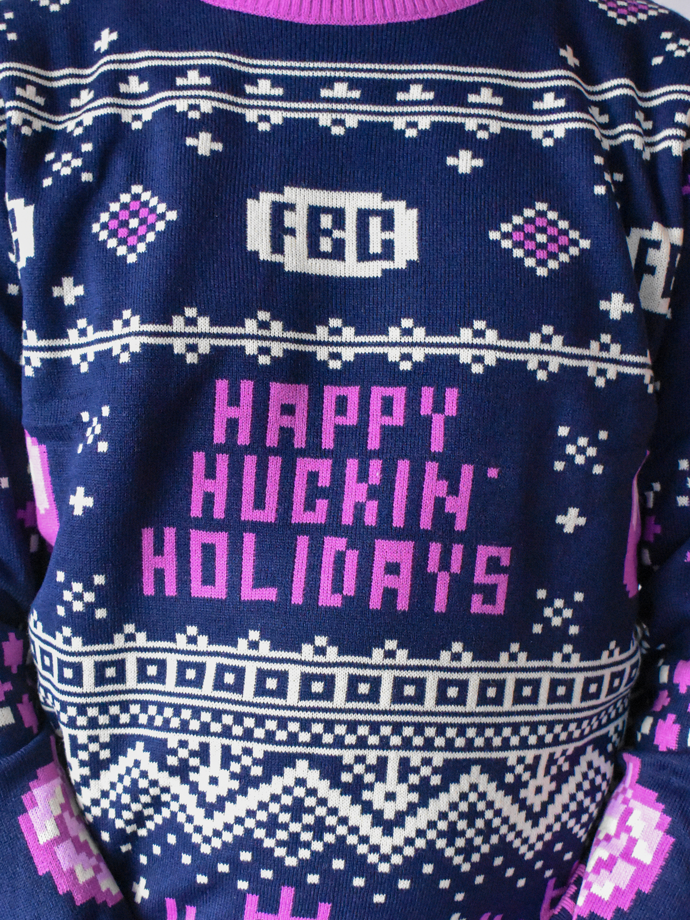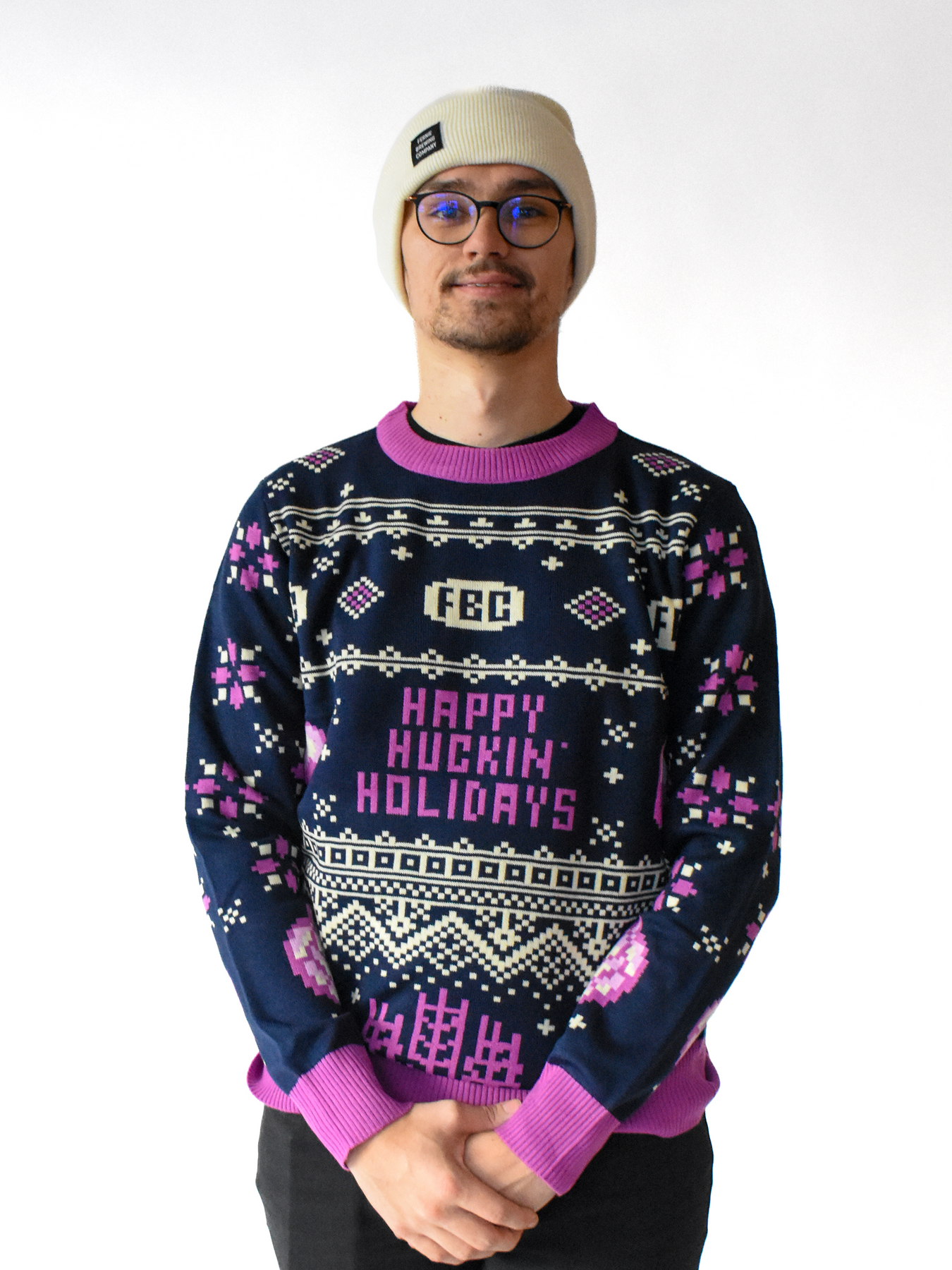 To celebrate the holiday season in style, we have a limited edition holiday sweater. With a relaxed fit and festive purple trim, this cozy knit is the perfect choice for your next holiday party if you're keen on being the star of the show.