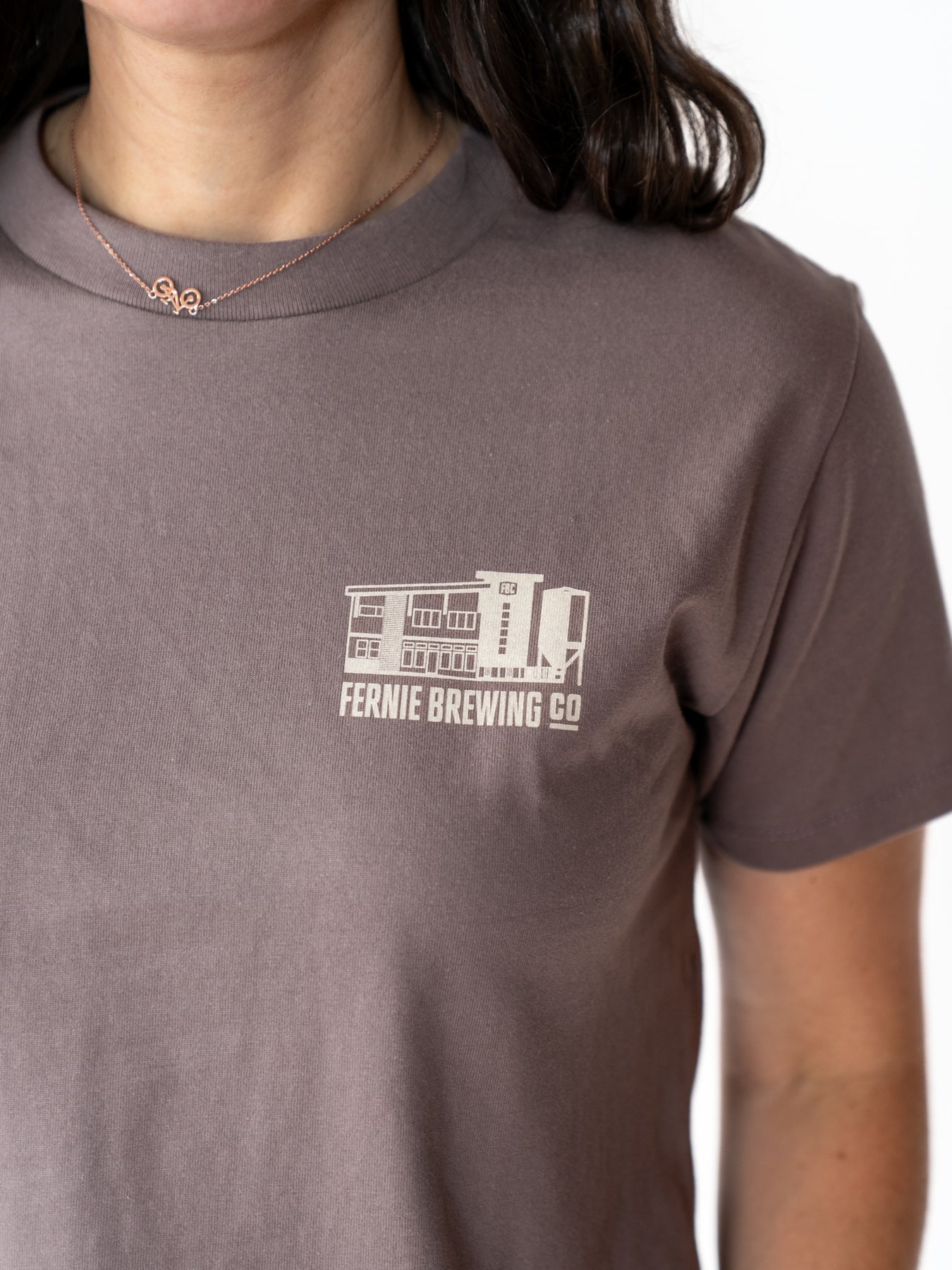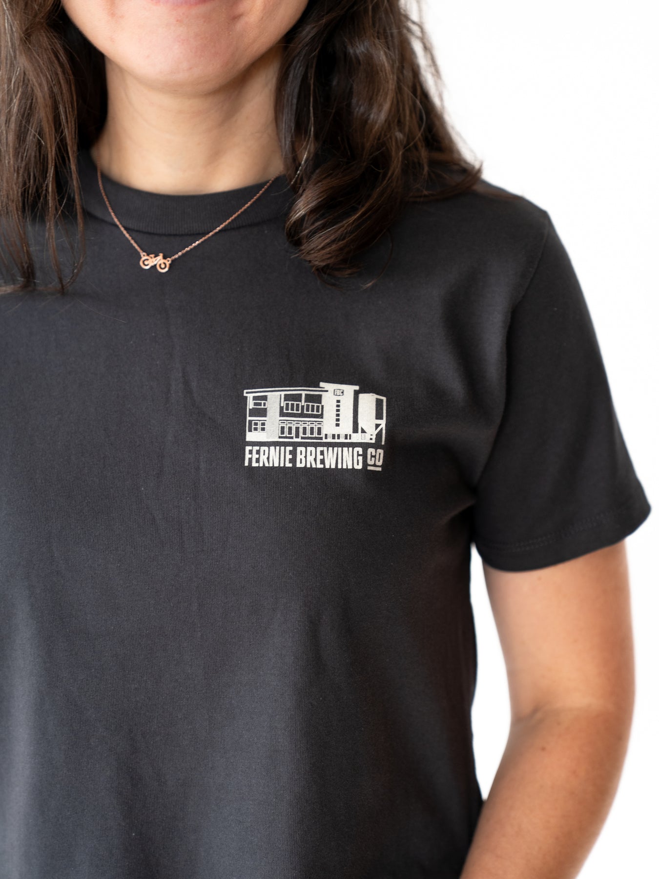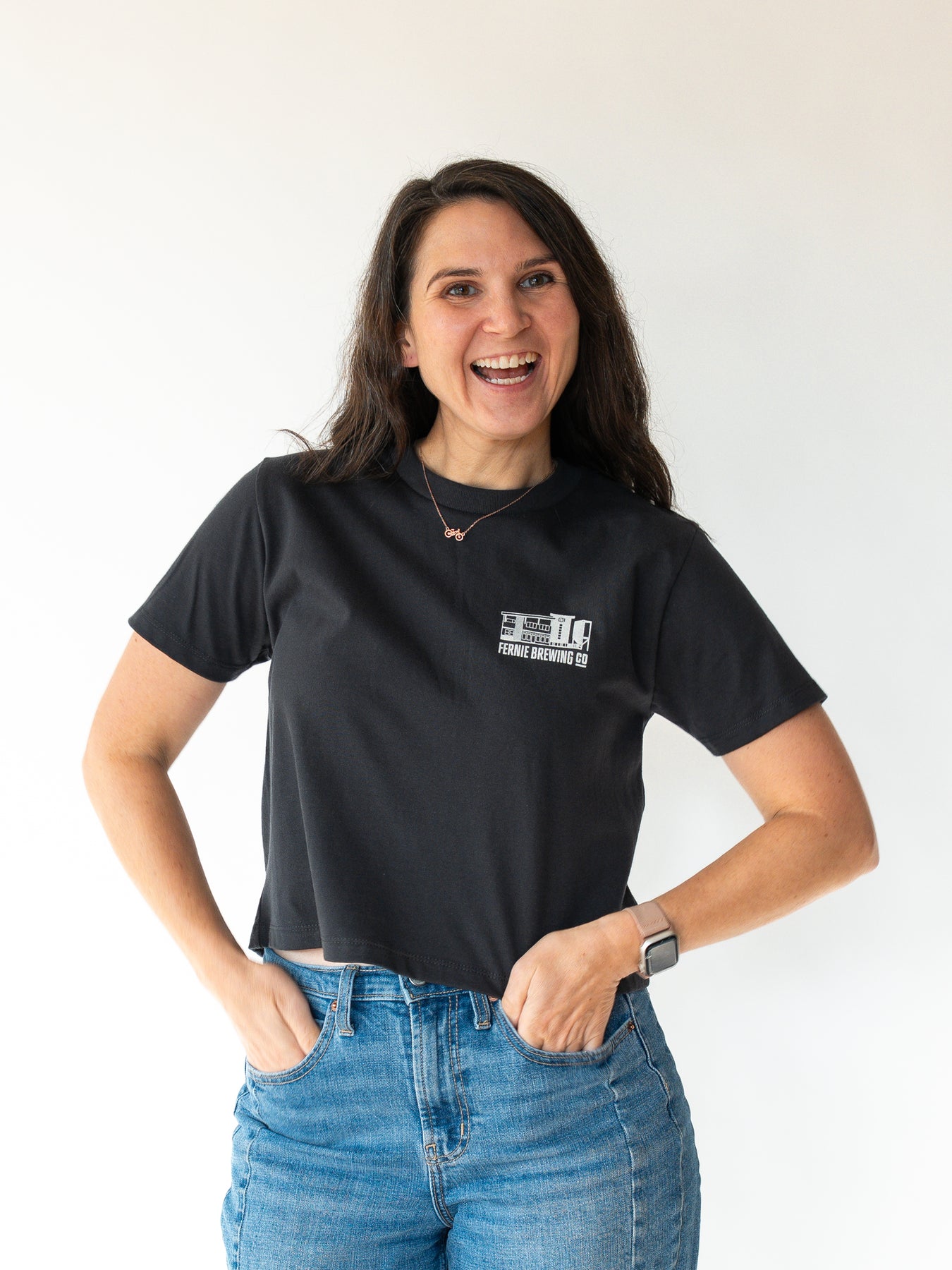 From patio pints to Sunday strolls, the Brewery Crop Tee is the perfect everyday top. With a crewneck and a perfect hip-length crop, it features our beloved brewery on the front and the classic FBC shield on the back hip.